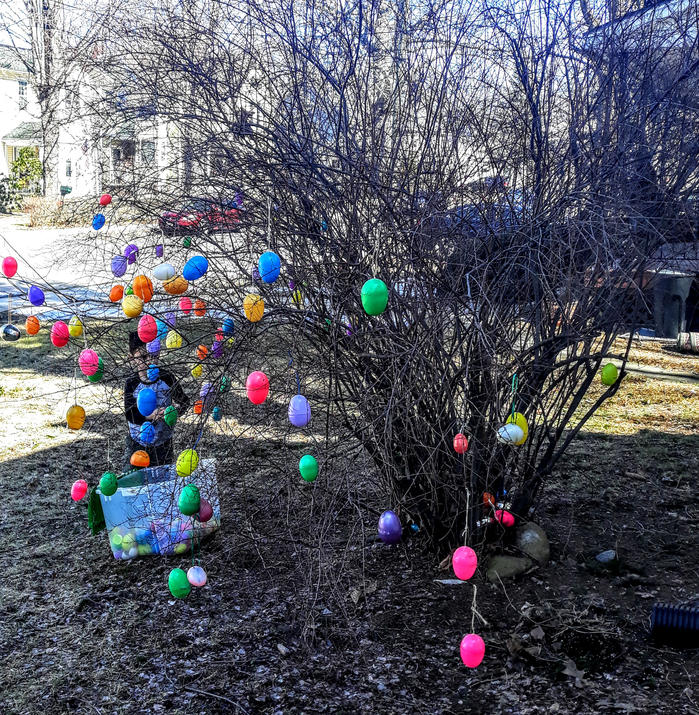 Every year, once the kids hang the eggs on the bush, cars slow down in front of our house to get a better look.